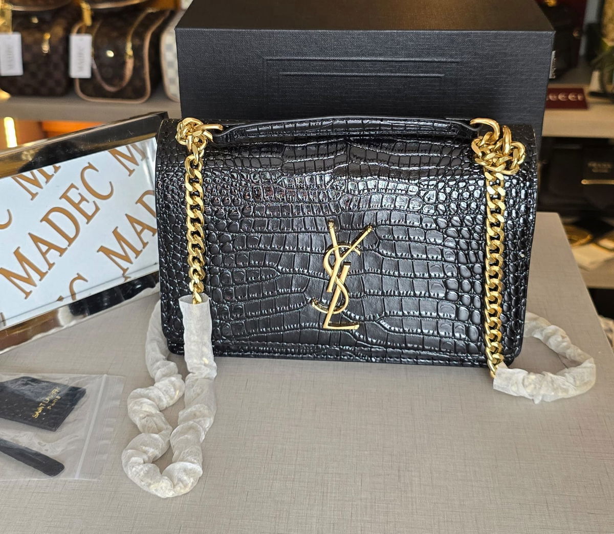 Cartera Yves Saint Laurent Negra Cadena Dorada CroCro