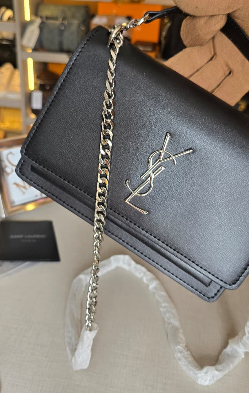 Cartera Yves Saint Laurent Negra Cadena Plateada