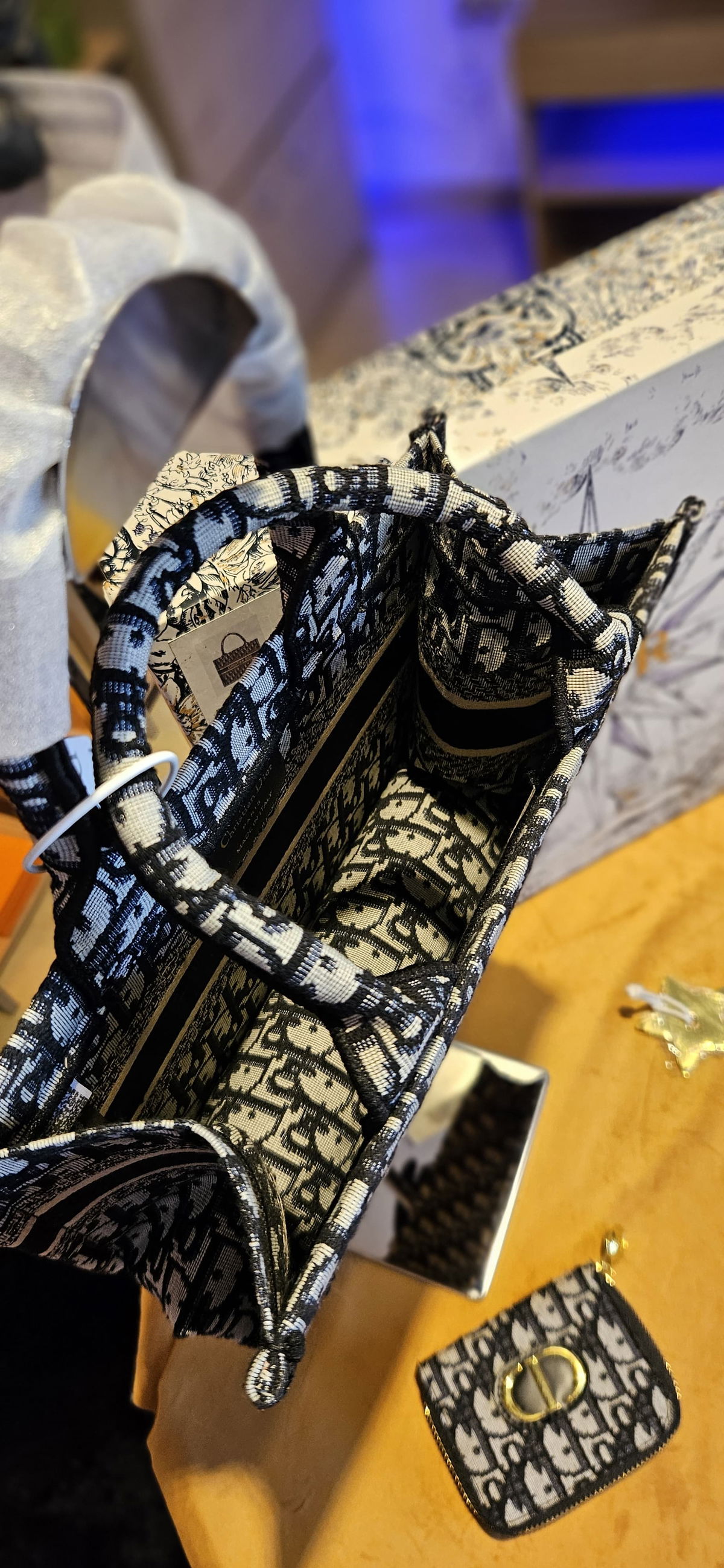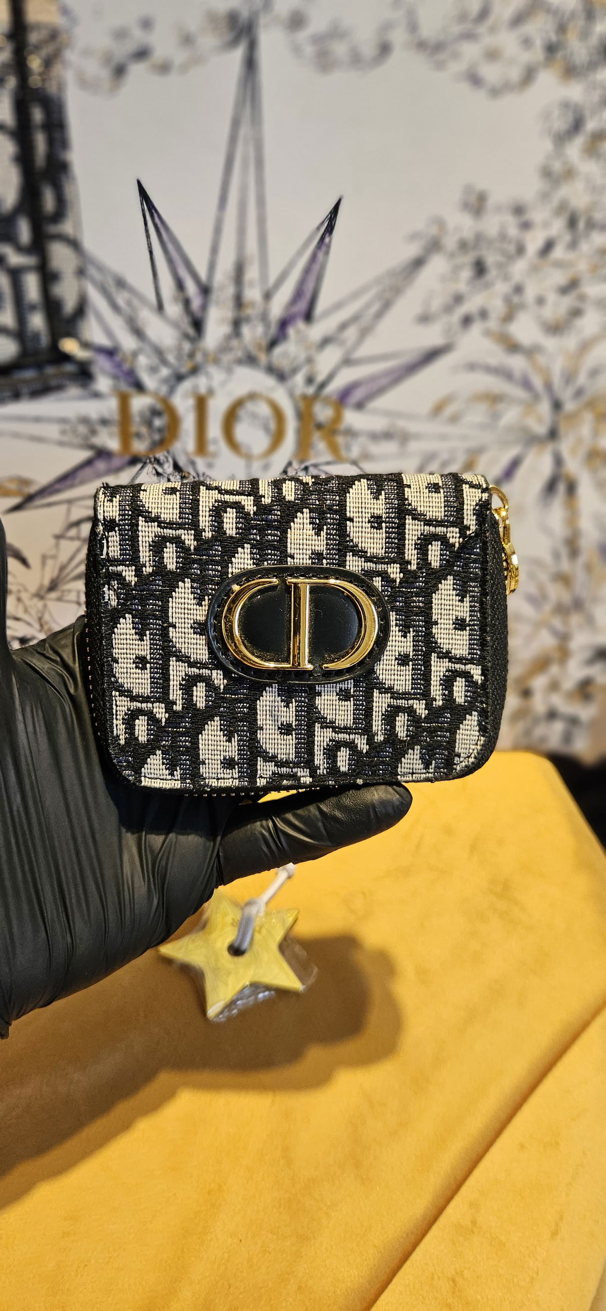 El kit Dior Premium es un regalo ideal para vos o un ser amado. Con su monedero Lotus Saddle que hace suyos los códigos emblemáticos de la línea que le da nombre. Se ha confeccionado con el motivo Dior Oblique en jacquard azul, acompañado de la cartera tradicional de la marca, ligera y cómoda. El llavero en forma de esrtrella Dior le da el toke de glamour que necesitas.