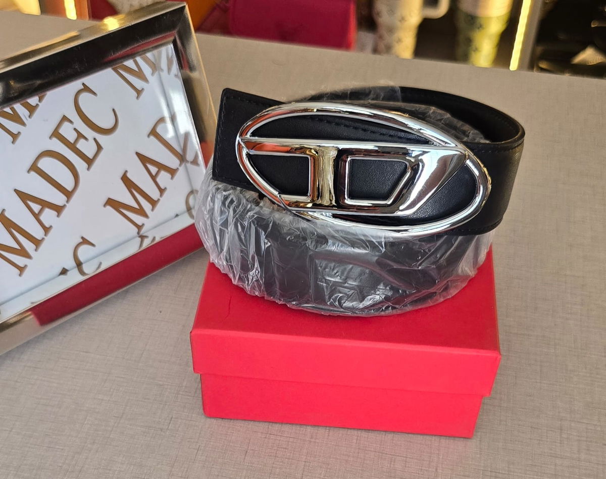 Cinto Diesel Negro Hebilla Plateada