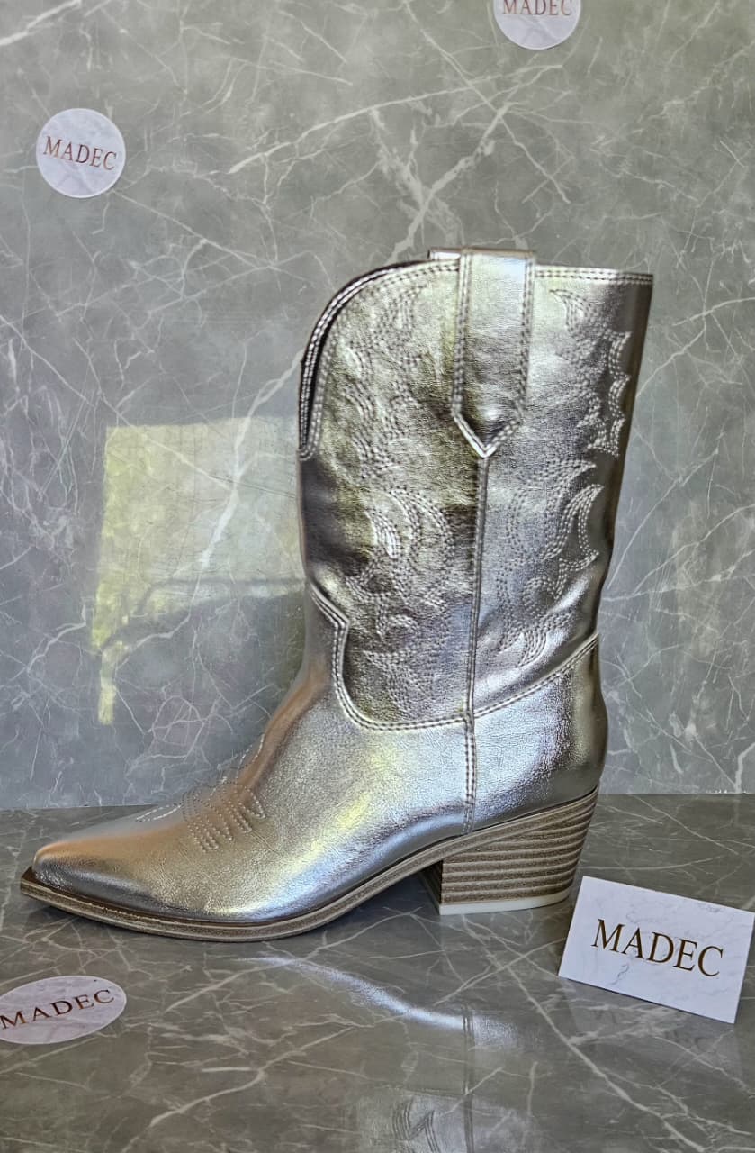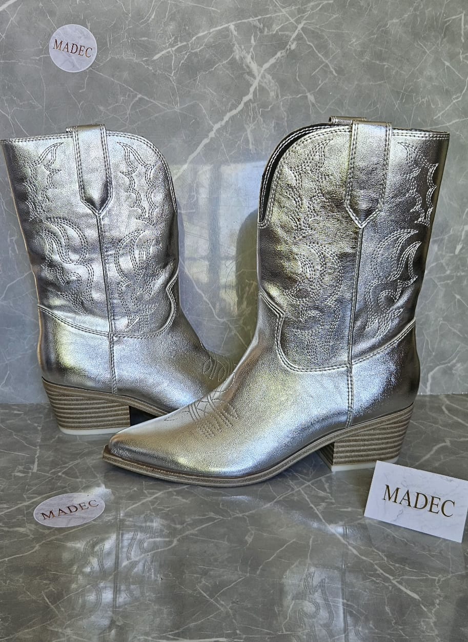 Estilo texano de media caña color plateado metalizado.
