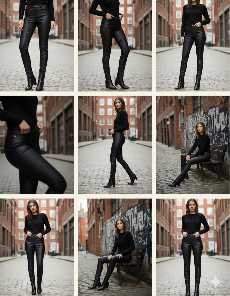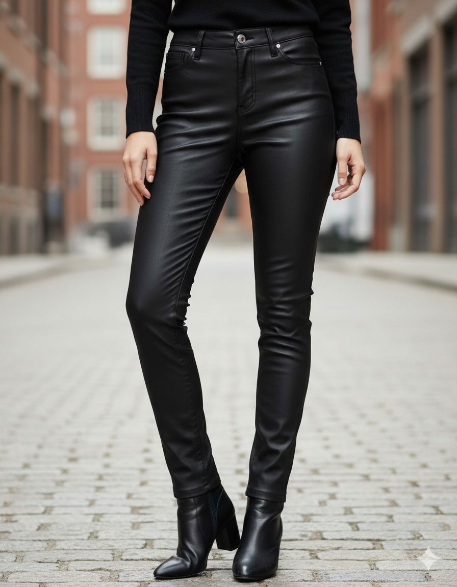 Pantalon largo estilo jean o skinny engomado efecto cuero.Medidas:Largo: 103 cmContorno de cintura: 80 cm.